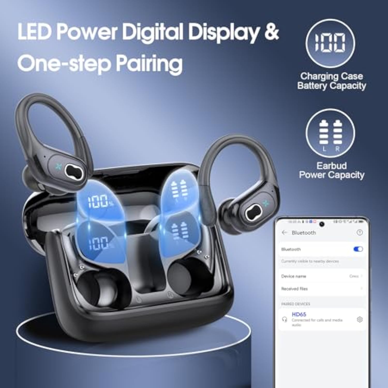 Leading Bluetooth 5.4 Technology and Easy Pairing: Features with the advanced Bluetooth 5.4 chip technology, Aptkdoe HD65 wireless headphones support HFP A2DP HSP AVRCP, which provides instant pairing and stable transmission without interruptions, with a stable connection distance of up to 33ft. The moment you open the case, the earbuds instantly and effortlessly pair with your previously connected device, sparing you from the hassle of manual pairing and long connection times.